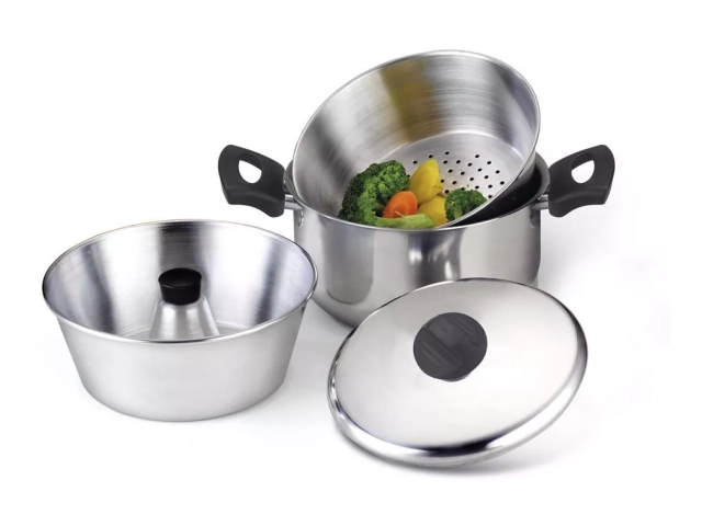 Set de Olla 3.5 Lts + Vaporera + Flanera + Tapa En Aluminio