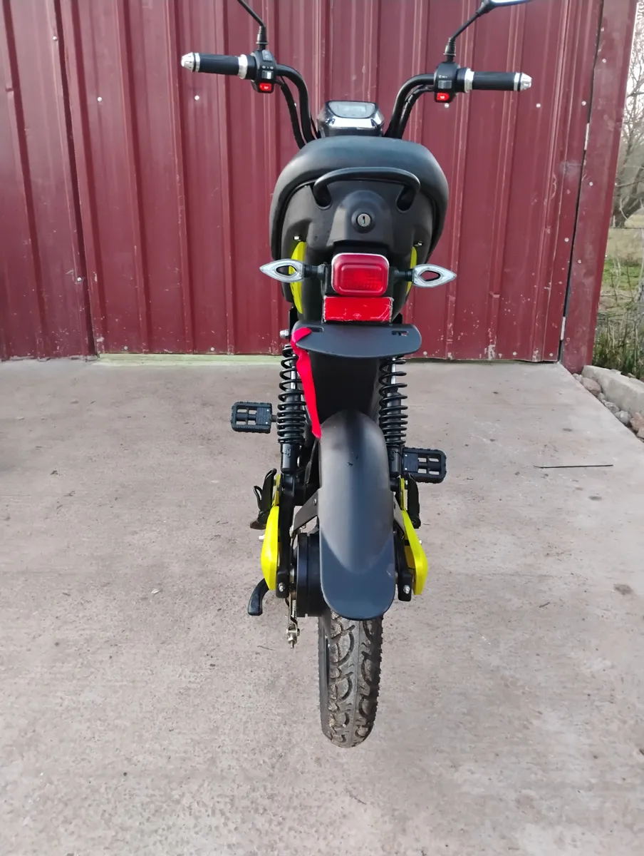 Descripcion: COLOR DISPONIOBLE OK : CELESTE. Motor Eléctrico de 350W. Batería Litio 48V 20Ah. Frenos: Tambor delantero y trasero. Velocidad máxima aproximada 32 Km/h. Autonomía aproximada 45 Km. Tiempo de carga 6 a 8hs. Dimensiones: largo 1.50 alt. asie