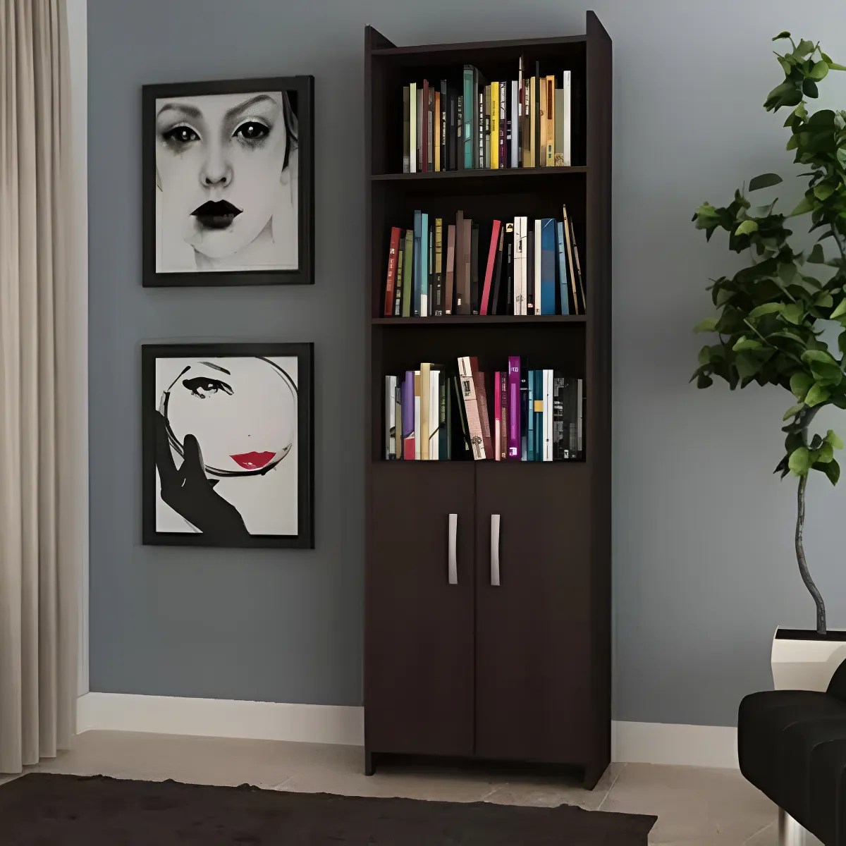 Biblioteca 2 puertas inferior 5 estantes Tabaco