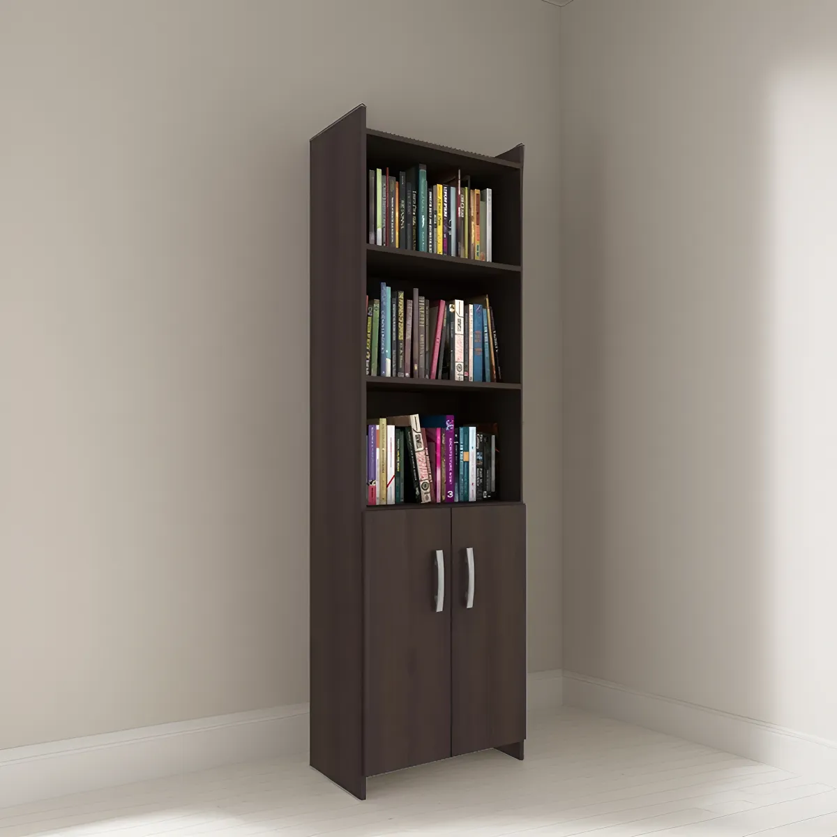 Descripción ESTANTERIA BIBLIOTECA CON PUERTAS CODIGO: 701.01 Color: TABACO Alto: 1.83 Largo: 0.57 Profundidad: 0.31
