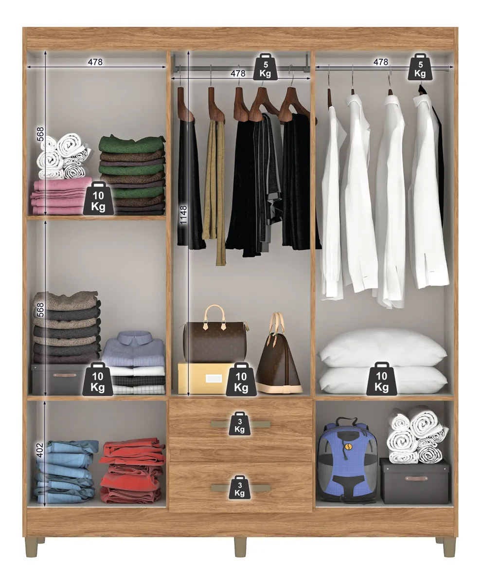 Ropero 6 puertas 2 cajones rieles telescopicos a.